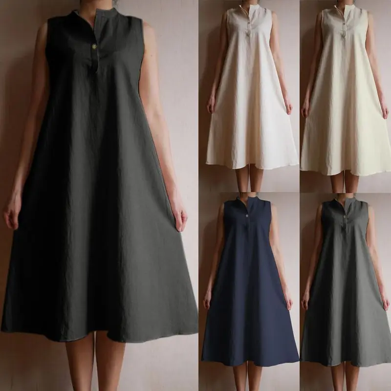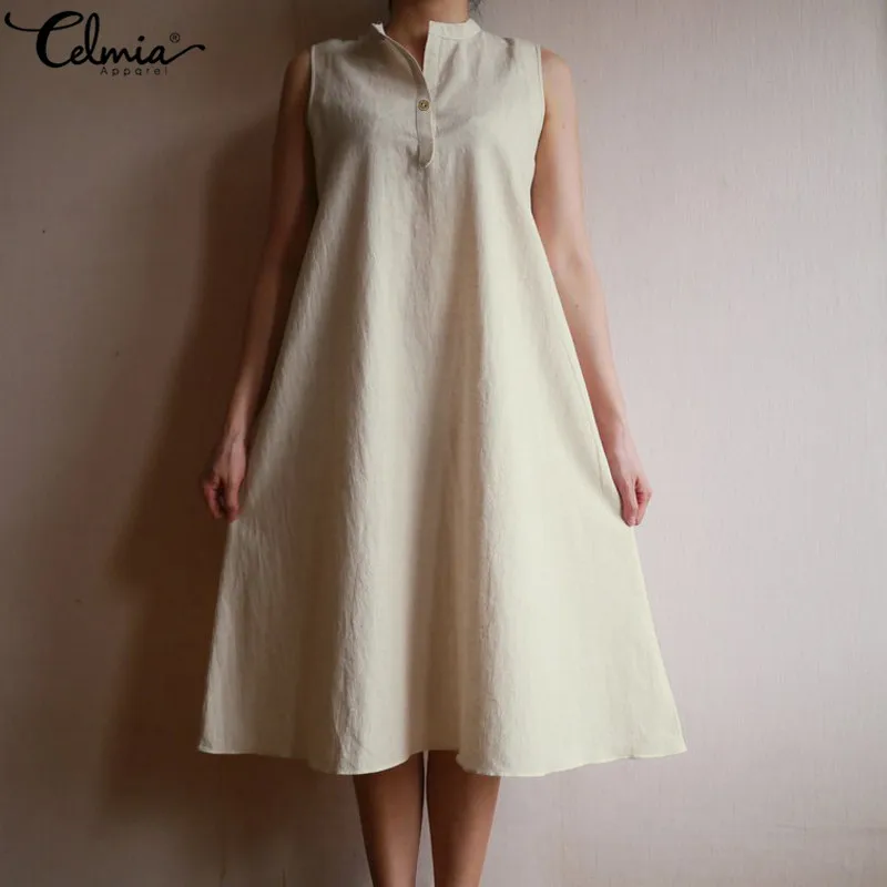 HIGH QUALITY 2020 Celmia Plus Size Sundress Women Vintage Long Shirt Dress Summer Sexy Sleeveless Casual Loose B